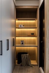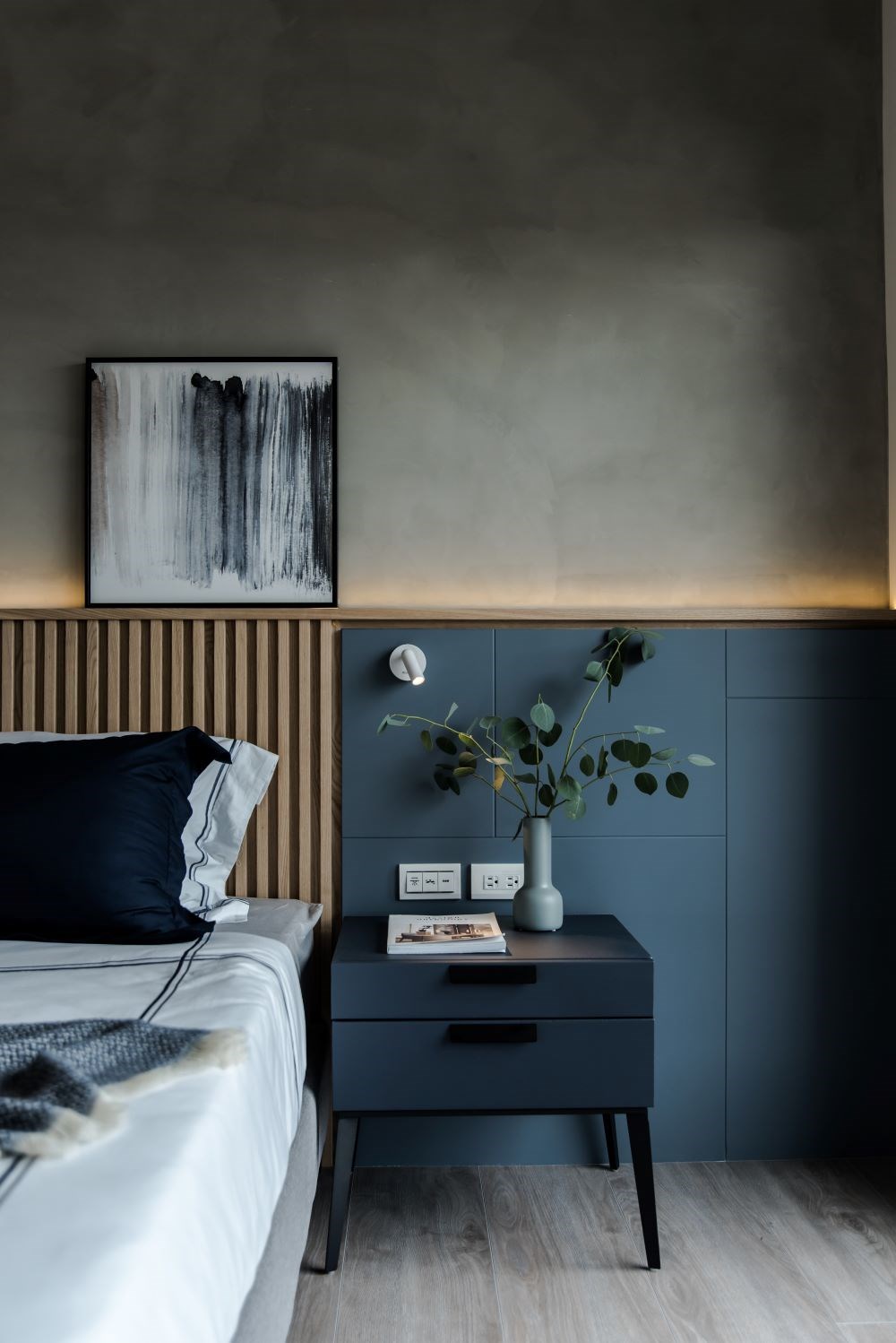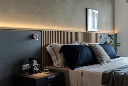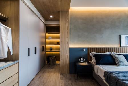 如果說客廳象徵著屋主所表達的光明面,那麼主臥室則是屋主內心真正的堅持所在。冷硬的色調與溫暖的光線相互交織,營造出低調奢華的氛圍。每一個夜晚,您都能在這片平靜舒適的空間中,找到內心的寧靜與安詳。