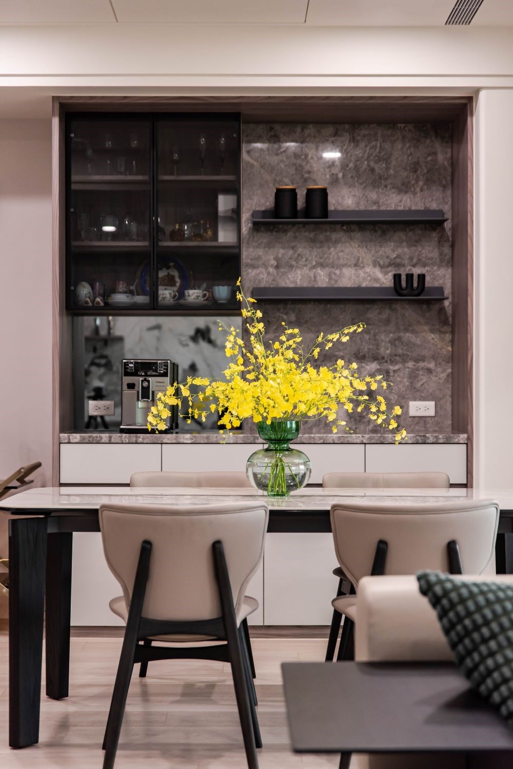 餐廳區域同樣精心設計,簡約而不失雅致的餐桌椅搭配,彰顯了主人高雅的品味。整個空間的色調柔和,燈光設計講究,每一處細節都經過精心考量,完美體現了設計師對高品質生活的卓越追求。